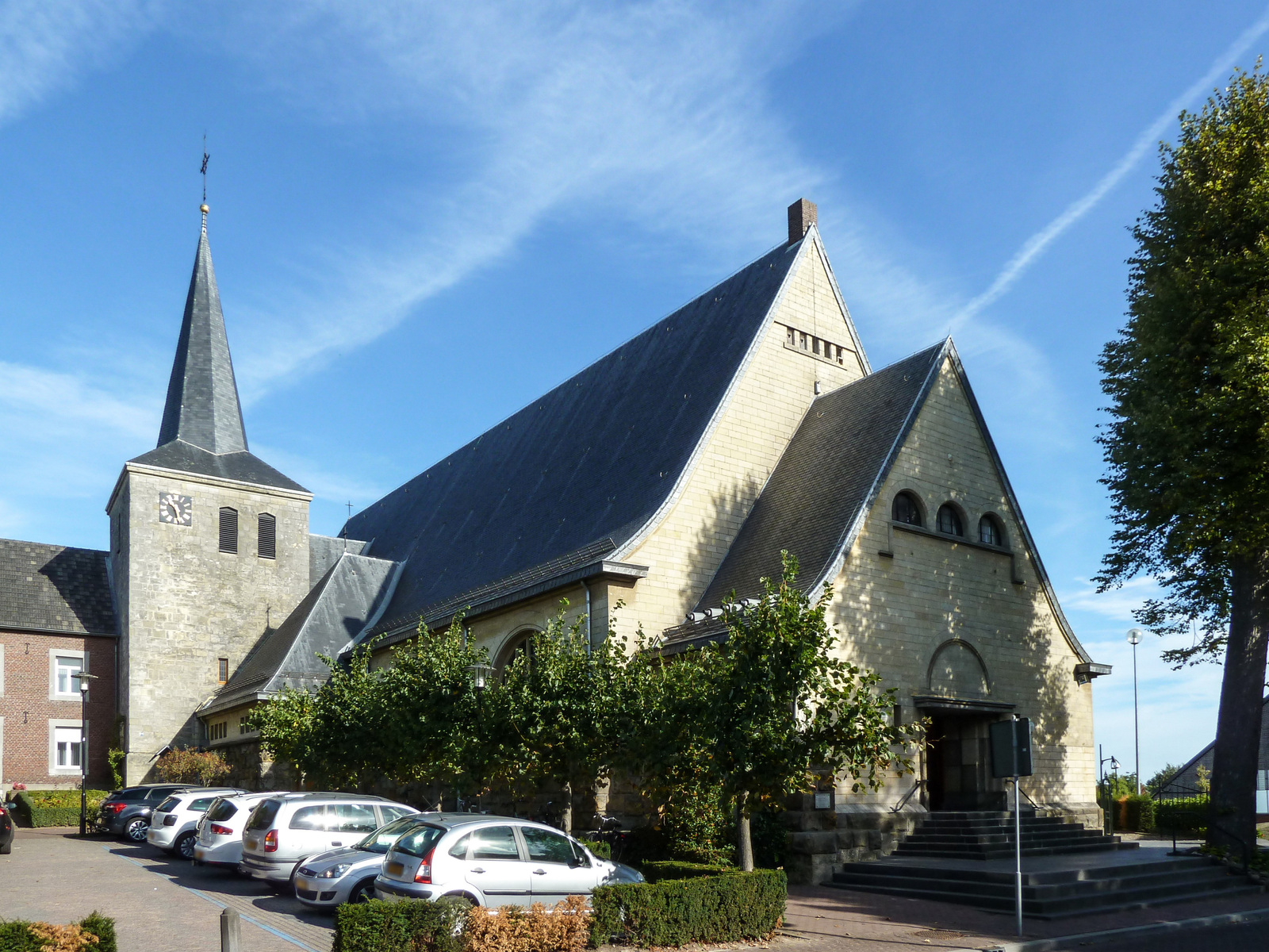 1922-'28 dwars op oude kerkas nieuwe mergelstenen kerk naar plannen van A.J.N. Boosten