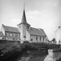 1262: een deel van de westelijke schipmuur; 14de eeuw toren; koor eind 15de eeuw; 1921 schip afgebroken;