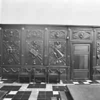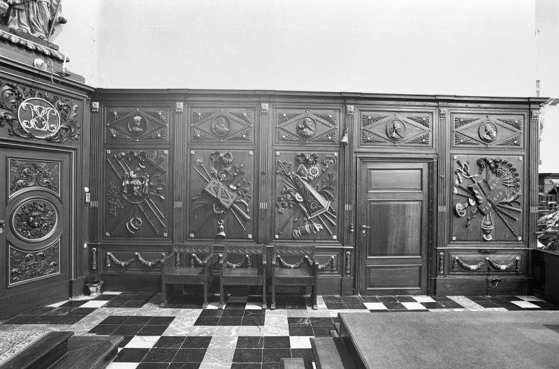 - Langs de zijwanden van het koor een stucversiering met tropheeën, 1812; beschildering suggereert eikehout.
