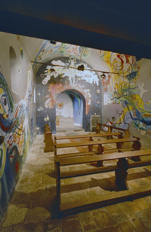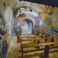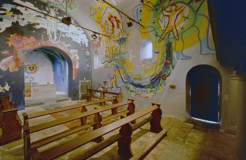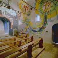 - Expressionistische schilderingen van Hans Truijen met onder andere afgebeeld Hemelvaart en Maria en kind.