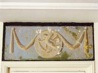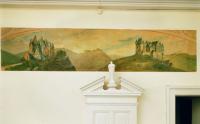 MuurschilderingHet voorhalletje van de trouwzaal is in de jaren '50 van de 20ste eeuw verbouwd en voorzien van schilderingen van M. de Leeuw. Zou het deze schildering kunnen zijn? https://www.collectienederland.nl/page/aggregation/nl-wandkunst-wederopbouw/6547
