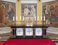 Muurschilderingen achter altaar Muurschilderingen onder andere achter altaar en bij het balkon -