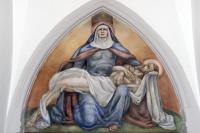 Pieta Muurschildering in Petrus en Paulus (De Papegaai), Amsterdam; Gerestaureerd in 2001, atelier Wil Werkhoven Amsterdam en Rob Bremer Ijmuiden, zie spreadsheet SKKN [techniek: Keimse verf] [staat: goed] -