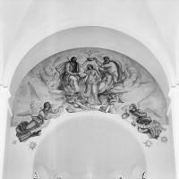 Drie-eenheid en de kruisiging Muurschildering in Gerardus Majella, Heerlen – Heksenberg; Drie-eenheid en de kruisiging in de apsis van de Gerardus Majellakerk (1938) in Heksenberg in Heerlen. [techniek: Keim] -
