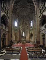 Decoratieschema van schijnmarmer, schijnmetselwerk, geometrische patronen en florale motieven, engelen etc.Muurschildering in Dionysius, Tilburg; Neogotische polychromie uit 1907, uitgevoerd door Dorus Hermsen naar tekeningen van Pierre Cuypers | uit: WvL = Wies van Leeuwen De honderd mooiste kerken van Brabant, verschijnt eind 2011. bvhh: mededeling op locatie; de ontwerpen zijn terug gevonden in het Cuypersarchief bij het Nai. Zie ook KB Krantenbank 1907. [staat: Gereconstrueerd in 2010-2011]