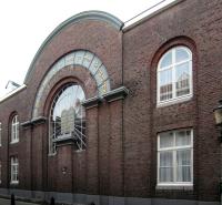Synagoge, Maastricht Interieur was beschilderd met onder andere ranken en de koepel met stralen en bladmotief. Overgewit bij restauratie 1964-1967. -